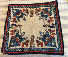 Vntg Dutch German Linen Table decor Peasant Folk Mid Century 20.5"x22" square