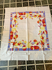 Mid Century Vintage Tablecloth yellow purple red abstract fruit Cotton 41” x 45”