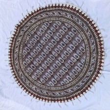 Vintage Mid Century Red Gold Paisley Fringed 37” Round Tablecloth Boho India