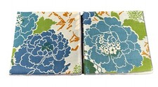Set 12 Mid Century 1970s Retro Modern Print Napkins Blue Florals Linen 24 Avail