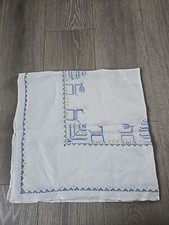 Vintage Mid Century Square tablecloth with cross stitich on 2 corners.