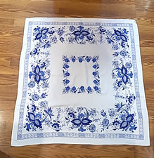BLUE ONION Pattern * Card Table Cloth 38X40 * Mid-Century
