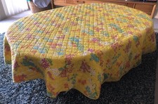 Vintage Round Quilted Floral Tablecloth Mid Century Mod Groovy Bright