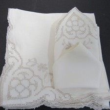 8 Vintage Ivory Cotton Dinner Napkins 16" Embroidery Detail Mid Century