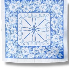 Blue Floral Tablecloth Vintage Kitchen Linens Mid Century