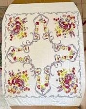43" Square Mid Century Table Textile Hand Embroidered Flower Baskets