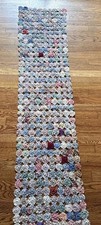 VINTAGE Handmade YoYo Table Runner Large Mid Century Fabrics 56”x16”