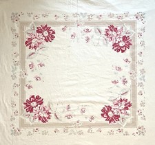 Vintage Mid-Century 50s Cotton Table Cloth Floral Red Pink 38”x 41”
