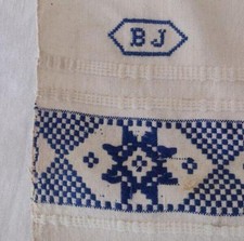 Antique Linen Pinafore Apron Blue Cross Stitch Embroidery Accents j89