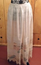Antique Apron Long Skirt Ivory Dimity Wide Hand Crochet Lace Victorian Vtg