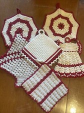 6 Vintage Crochet Pot Holders Hot Pads Trivets Red Yellow Green Handmade