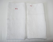Pair Of XL Antique French Pure Linen Hand Towels, Napkins Monogrammed HA, VH