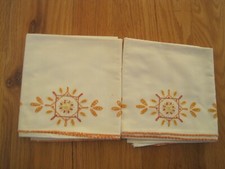 ANTIQUE EMBROIDERED WOVEN GUEST TOWEL/TEA TOWEL NAPKINS (2) W/FRINGE Orange/brwn