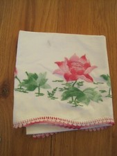 Embroidered Dish Towel Antique Pair Pink Flowers