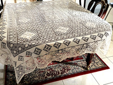 WONDERFUL ANTIQUE HAND MADE FILLET LACE TABLECLOTH ITALY C 1930'S