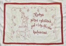 antique Czech HAND Embroidery Redwork HOME KITCHEN Motto Hanging Folk Art BANNER