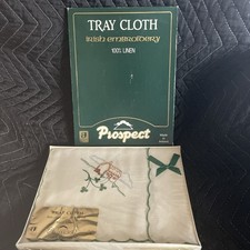 Vintage Embroidered Tray Cloth Pure Irish Linen Unopened in Original Box