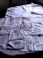 ANTIQUE FRENCH BRIDAL WHITE MIXED LOT LINENS 12 pcs EMBROIDERED TABLECLOTH ETC