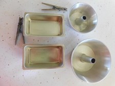 Vintage Child's Toy Lot of 2 Metal Loaf Bake Pans And 2 Aluminum Angel Food Cake