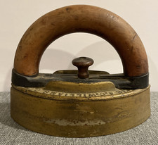 Antique Brass Coal Steam Iron Sold Brass Wood Handle