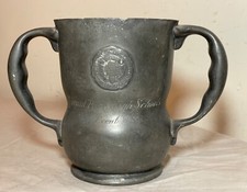 antique 1909 pewter double handle PA high school relay race trophy award mug cup
