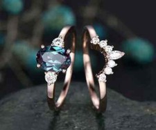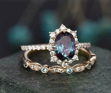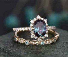 14K Rose Gold Over 3.5Ct Oval Cut Alexandrite Halo Bridal Engagement Ring Set