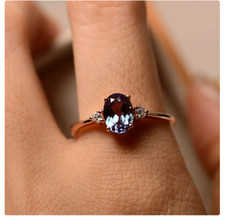 Alexandrite Ring Engagement Ring Oval Cut Gems Color Changing Gemstone Ring