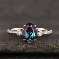 Beautiful Alexandrite Diamond 2.50Ct Oval Cut Bridal Ring 14K Rose Gold Finish