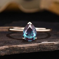 14k Solid Gold Pear Shape Alexandrite Gemstone Engagement Ring For Her S(3-10)