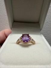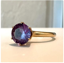 10k Yellow Gold Oval Lab Created Alexandrite and Diamond Ring Size 7