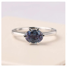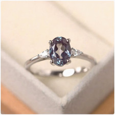Alexandrite Ring 925 Silver Ring Oval Cut Gems Color Changing Gemstone Ring