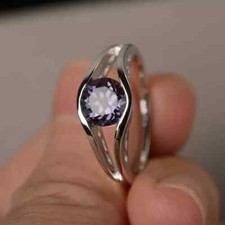 925 Sterling Silver Lab-Created Alexandrite Round Cut Women Handmade Ring
