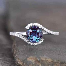 2.20Ct Round Cut Simulated Alexandrite Engagement Ring 14k White Gold Plated