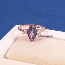 Solid 925 Sterling Silver Alexandrite East West Marquise Cut Engagement Ring