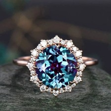 2.55Ct Round Cut Alexandrite Lab Created Diamond Wedding 14K Rose Gold FN Ring