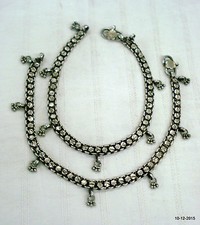 Vintage Antique Tribal Old Silver Anklet Pair Ankle Chain Feet Bracelet