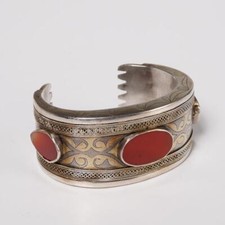 Vermeil Silver Ethnic Cuff Bracelet Antique Tekke Turkmen Turkomen Carnelian
