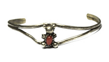 Antique Sterling Small Childs Teddy Bear Red Coral Wire Cuff Bracelet 11mm