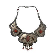 Vintage Turkmenistan Turkmen Tribal Gilded Silver and Carnelian Pendant Necklace