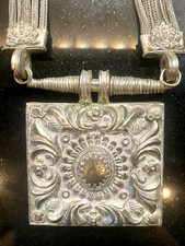 Antique Heavy Silver Tribal Indian Necklace Hand Painted Amulet Pendant 245+ Gms