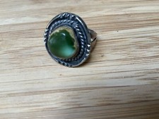 ANTIQUE VINTAGE NAVAJO INDIAN STERLING SILVER JADE GREEN TURQUOISE RING sz:8.25