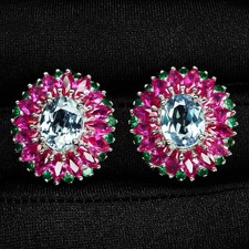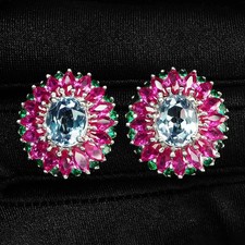 3 Pair Earrings Blue Topaz Garnet Alexandrite