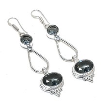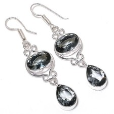 Gray Alexandrite Gemstone Handmade 925 Sterling silver Jewelry Earring Size 1.8"
