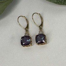 10K Yellow Gold Lab Alexandrite Dangle Earrings Leverback