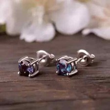 2Ct Round Cut Natural Alexandrite Studs Women's Earrings In 925 Sterling Silver