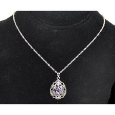 Luxury Natural Genuin 1.5ctw Amethyst Marcasite Vintag Pendant Necklac