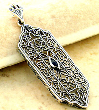 GENUINE SAPPHIRE 925 STERLING SILVER DECO ANTIQUE STYLE FILIGREE PENDANT 981X