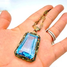 Antique 835 Silver Blue Topaz Necklace Art Deco Statement Pendant