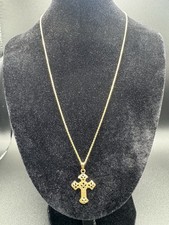 14K Yellow Gold Victorian Antique Filigree Cross Pendant & 16in Necklace 2.42g
