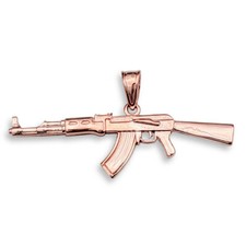 Solid 10K Rose Gold AK-47 Pendant, Real Gold Gun Pendant AK47